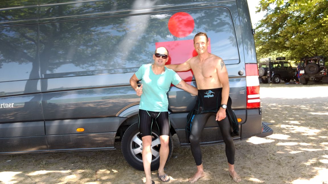 Markus und Christian waren am letzten Wochenende schon mal auf der IRONMAN-Radstrecke unterwegs und unterzogen diese einer intensiven Prüfung. Daneben stand ein Probeschwimmen im Langener Waldsee an. Sehr gut Männer, jetzt wisst ihr ungefähr was auf euch zukommt!